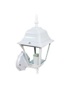 FAROL COLONIAL DE SOBREPONER EN MURO, FABRICADO EN ALUMINIO INYECTADO CON PANTALLA DE CRISTAL TRANSPARENTE,ACABADO EN COLOR BLANCO. BASE E-26. TENSIÓN DE OPERACIÓN A 127V.